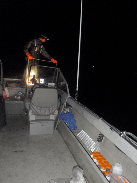 We are answering these questions through a variety of techniques, including night time sampling throughout the year, size class analysis, growth rate analysis, and stable isotope (C13 and N15) analysis along with profiling the fatty acid composition of mysids. A final goal of this project is understand the overall role in the food web of mysids and see if this understanding can be used to help fisheries management, changes in mysid diet and growth related to climate change, and distinguish between the role of terrestrial carbon and autochthonous.