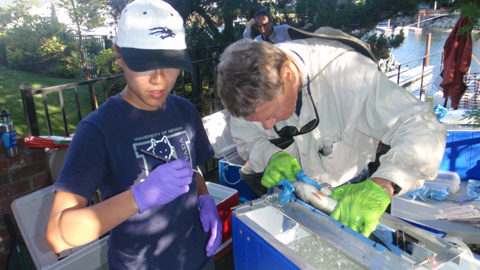 Lake Tahoe’s fishery is among one of the least studied of all the large lakes in the world. Over time there have been a variety of stressors (e.g. introduction of species, eutrophication, nearshore habitat modification), which may have impacted the fishery and only a limited amount of snapshot investigations have been conducted to investigate these impacts or determine the status of a particular species. With little to no information on the status of Tahoe’s fishery, in particular the nearshore components where most of the native, littoral fish reside, we have compiled information to determine the status of the nearshore native and non-native fish community and if there are quantifiable indicators and methodologies that can be created to determine the condition of the nearshore fishery. Traditional indicators (e.g. species composition, density, growth, condition, and spawning potential) were examined using historical (1960, 1990, etc) and contemporary (2008-2010) data to detect mid and long-term changes in Lake Tahoe nearshore fishery. The potential application of two novel indicators (trophic niche and UV) to measure long- and short-term changes in nearshore fishery was also examined. Experiments were conducted by our collaborators from Maimi University Ohio (Dr. Craig Williamson, Dr. Jim Oris, Dr. Andrew Tucker, and Amanda Gevertz) to determine if ultraviolet radiation (UV) can be used to link nearshore and non-native fish ecology to the physical environment.